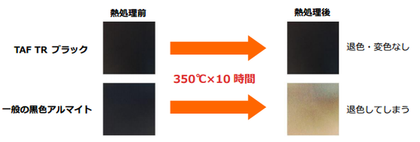 弊社には耐熱黒アルマイト「TAF TR BK」があります。